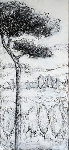 Ces paysages presque monochromes de l'artiste peintre et dessinatrice Pascale Nouailhat, sont des tableaux créés à l'encre de chine sur papier marouflé sur bois. Liberté et maitrise animent ces œuvres inspirées par la nature: feuillages, branchages et lumières.